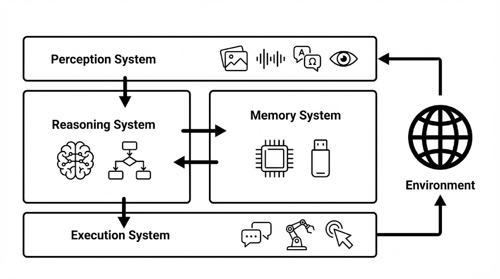 - Defining the system architecture: trigger/perception, reasoning, memory, and execution modules.